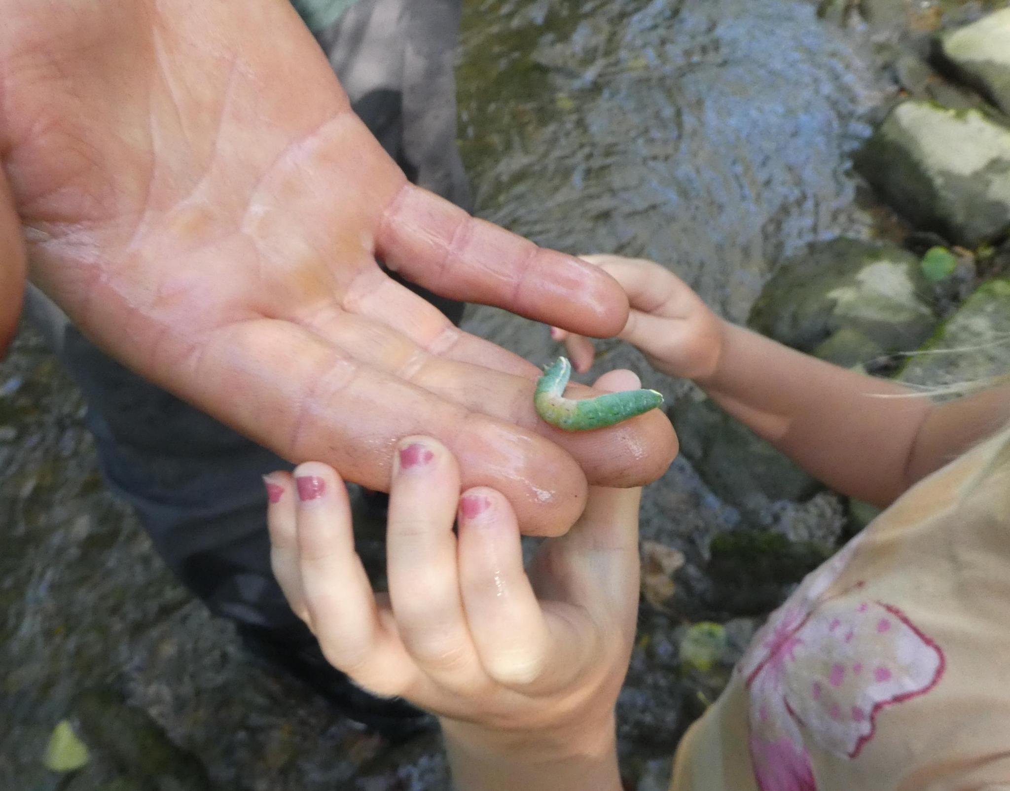 Wer mochte, konnte bequem mit dem Traktor bis zur Einstiegsstelle fahren. Dort gab Axel Strauß eine spannende Einführung in die Tierwelt der Steinlach. Auf dem gemeinsamen Weg bis zum Nehrener Sportplatz entdeckten die Teilnehmenden zahlreiche Insektenlarven und kleine Fische. Besonders eindrucksvoll war der Fund einer schwarzen Bachforelle, die – wie Herr Kauth erklärte – durch ihre Blindheit die Fähigkeit verloren hatte, ihre Farbe der Umgebung anzupassen. Natürlich wurden alle Tiere nach kurzer Betrachtung wieder behutsam an ihren Fundort zurückgesetzt.